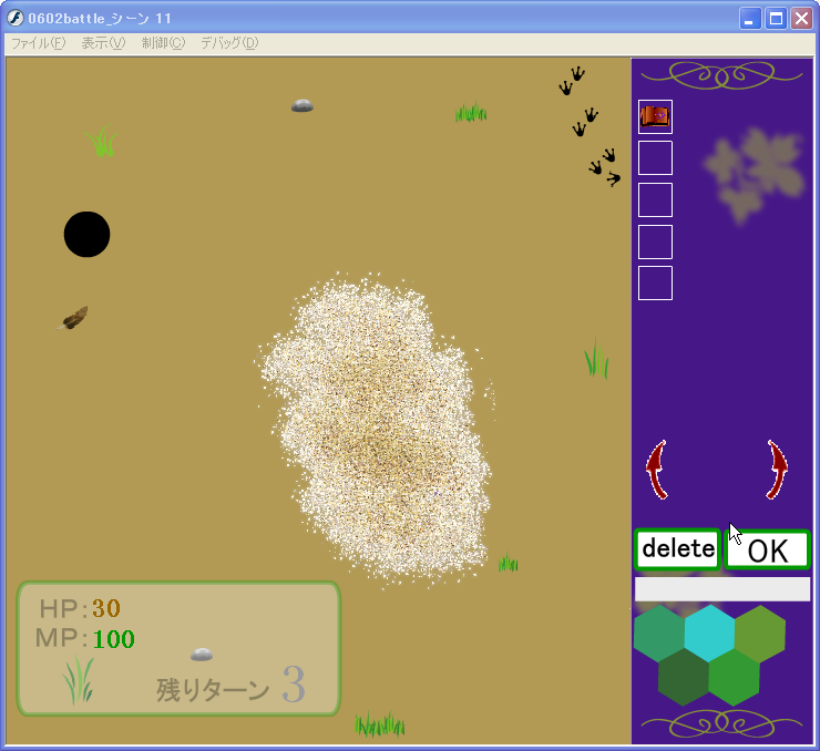 で、ためしに画面上で逃げ回る敵相手に魔法を唱えて的にしていたんだけど、