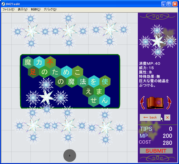 メニュー画面に魔法がかぶさる問題はあるけど、とりあえず置いておこう。